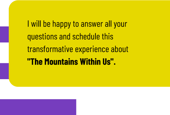 Through my business seminar ” The Mountains Within Us” you will be able to inspire, motivate your team and lead your company to reach its maximum potential.